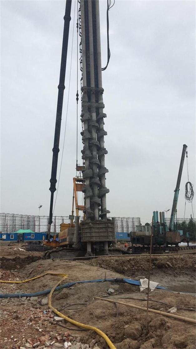 在本工程中住宅区和商业S-2采用预应力混凝土管桩,桩型为PHC600(130)-AB-C80;地库和大商业地下车库采用预应力混凝土方桩,桩型为AZH-40-12D。基坑支护部分采用三轴搅拌桩、钻孔灌注桩、双轴深层搅拌桩、预应力锚索钢板桩及高压旋喷桩等施工工艺。