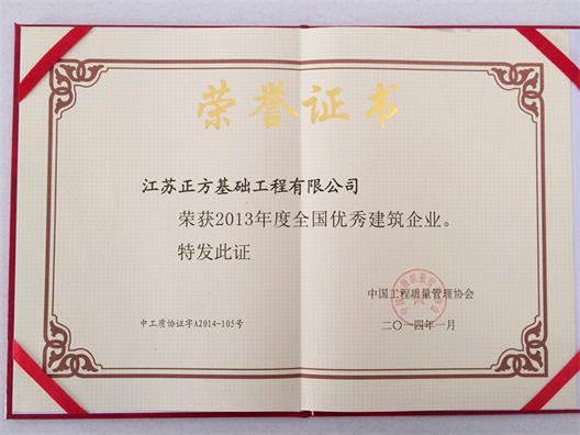 日前,由中国工程质量管理协会、中国施工行业管理协会联合众多行业协会主办的“2013建筑业年度总评榜”评选活动已隆重落下帷幕。我公司在扎实的工作中发展迅猛,树立企业品牌,着力打造优质品牌工程,经中国工程质量管理协会审核评定,荣获“2013年度全国优秀建筑企业”称号。